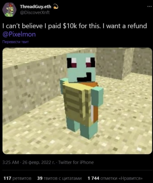 Pixelmon - коллекция о которой почти все криптаны, которые крутили несколько лет назад в nft сфере. У ребят был просто нереальный хайп и они собрали реально целую кучу денег с сейла своих нфтишек (На картинке можно увидеть какой был минт прайс). После сейла был огромный фад, так как нфтишки выглядели как на картинке и в общем дела пошли не очень, но ребятульки собрали кучу денег, поэтому у них была возможность keep building. Делают там игры, авось сделают web3 Palworld