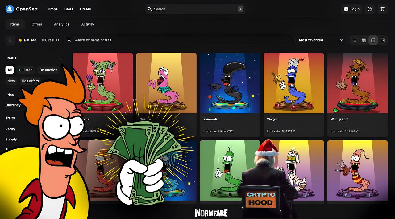 Играю в игру вы не тратит свои деньги, активность абсолютно бесплатная ещё и с телефона, можно играть в любой точке мира, что является неплохим плюсом, проект также имеет неплохих партнёров, что тоже стоит взять во внимание, Wormfare имеет свою NFT коллекцию на OpenSea, общий тотал которой составляет 44.400 USDT, это нам указует на то, что спрос у проекта есть, тем более актив у проекта 50к+ юзеров, так что берём проект на радар и начнаем воркать!