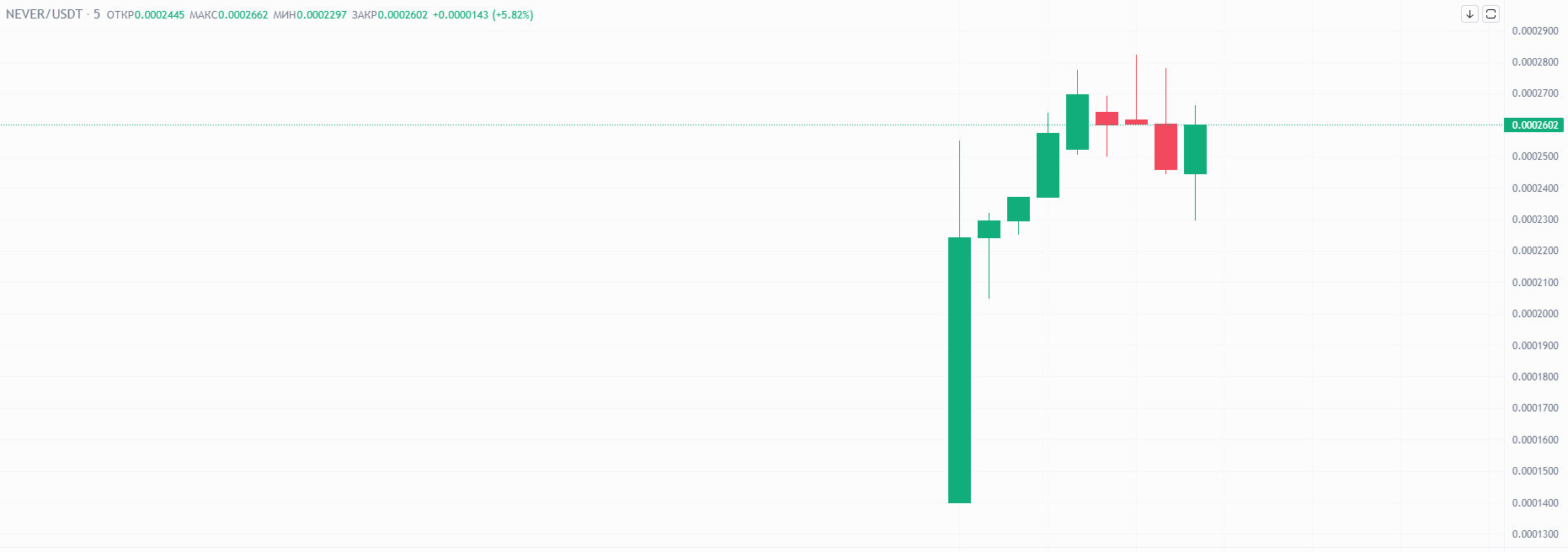 Сегодня их залистили на Gate.io. Торги начались в 14:00 по МСК в паре NEVER/USDT и токен показал хороший рост на более чем 40%.