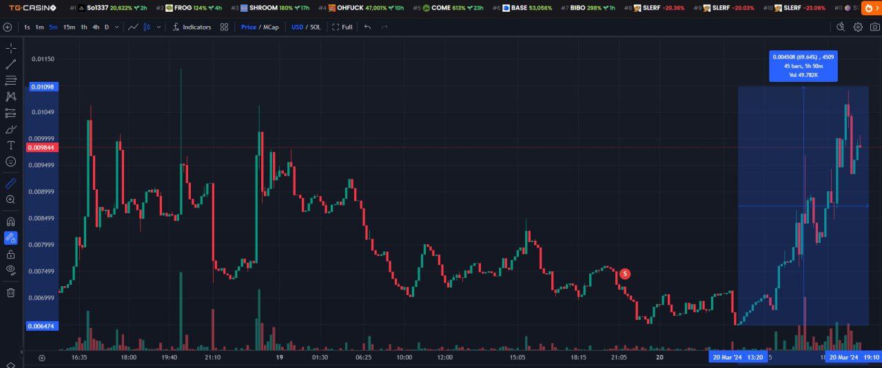 Очередной щиток, который может дать 100х, а может загнуться через неделю, имеем виду. Если решитесь играть в казино, то купить можно через ботов BONK или SolTrading