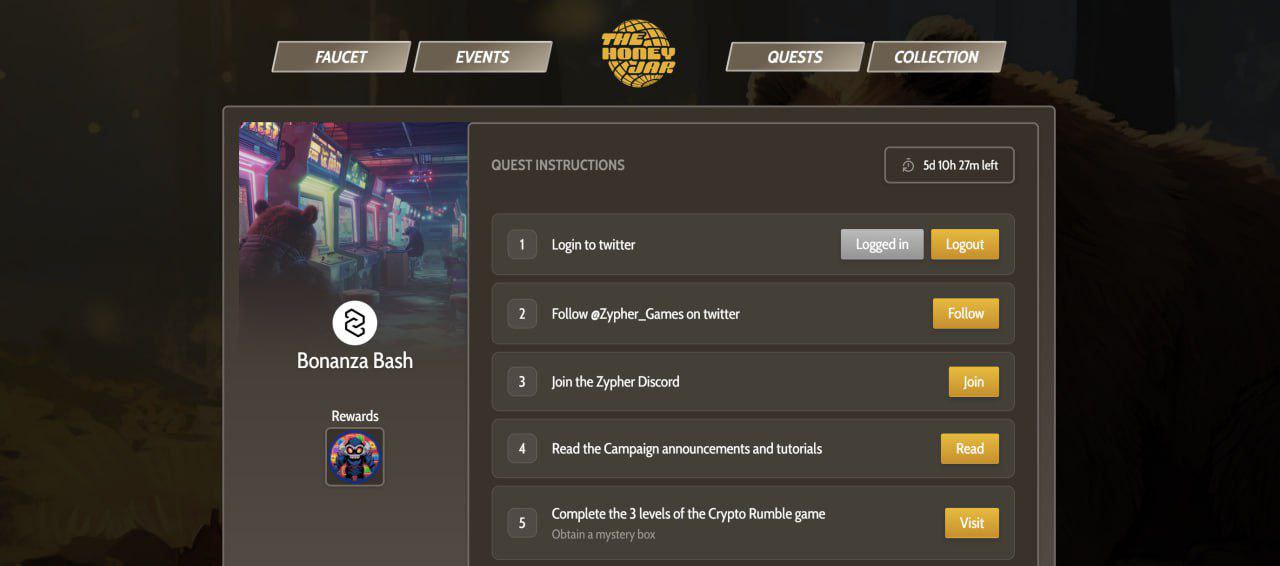 Сейчас мы можем пройти 3 новых квеста на HoneyJar (одна из топовых площадок на Berachain). Тем самым сделать доп. активности и получить NFT