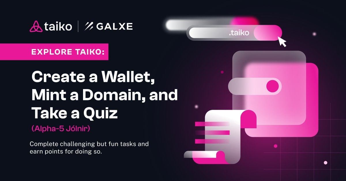 Выполняем квесты от Taiko в рамках их новой кампании на Galxe под названием "Experience Taiko: Create a Wallet, Mint a Domain, & Take a Quiz":