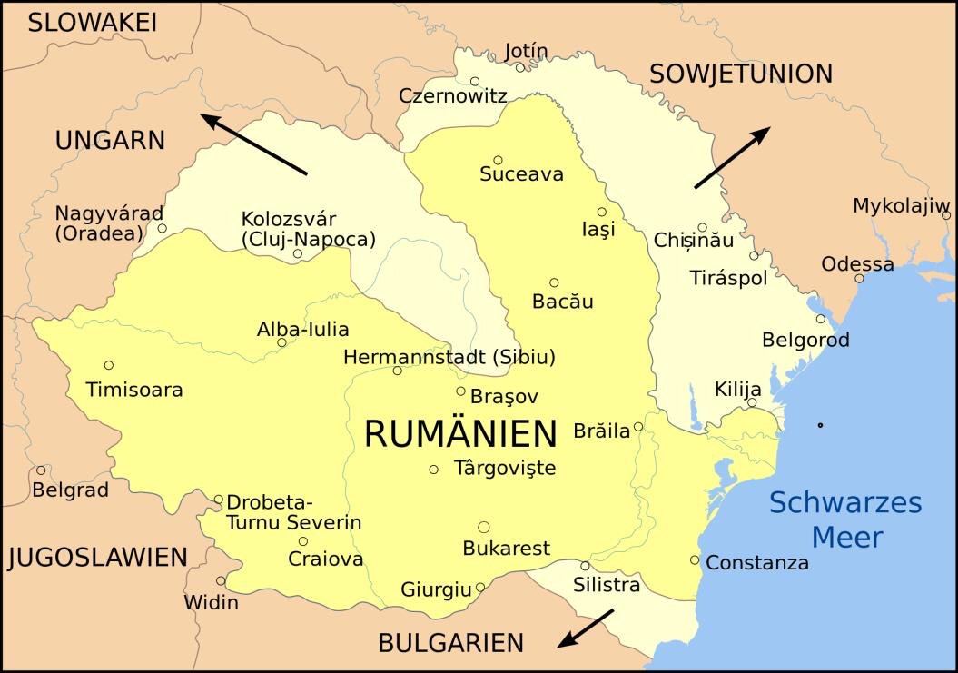 Итого чуть больше чем за два месяца Румыния лишилась трети территории (100 тыс. из 295 тыс. квадратных километров) и трети населения (7 из 20 миллионов).