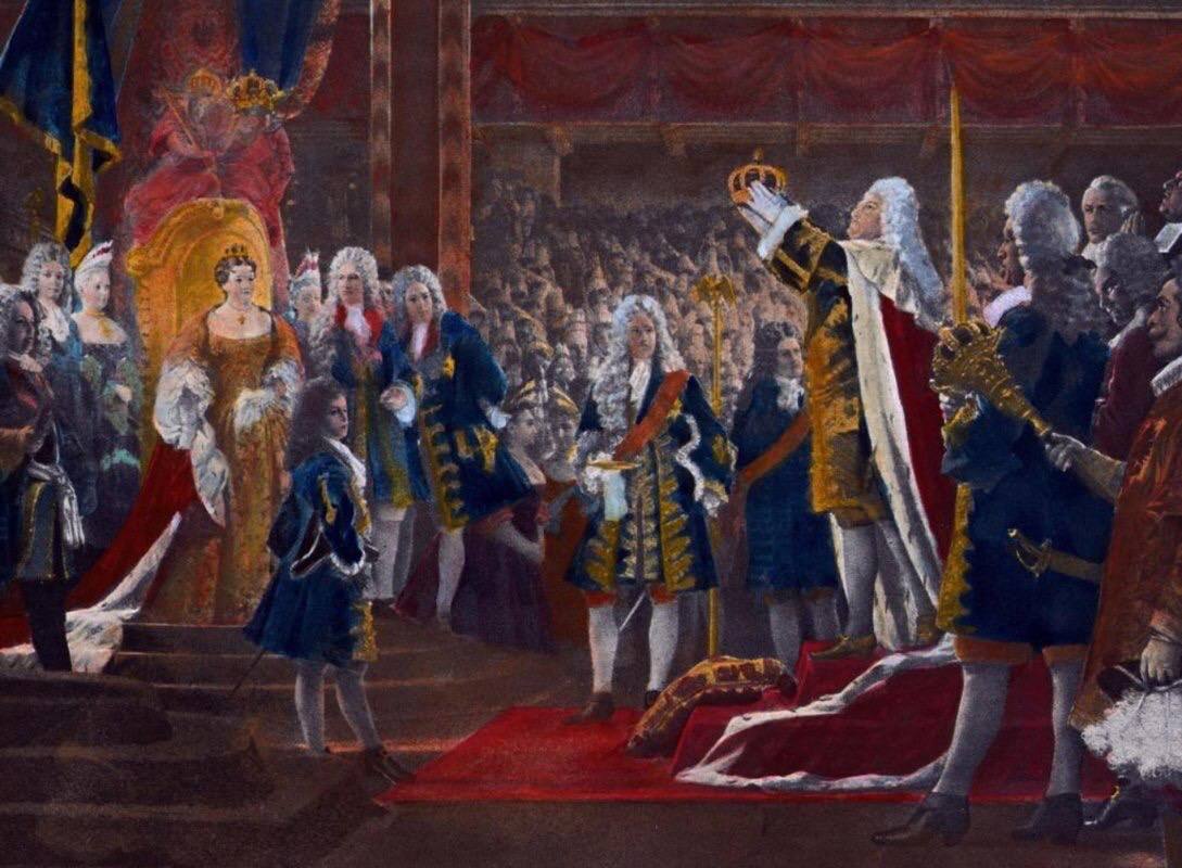 В начале XVIII в. ещё существовала, пусть и значительно ослабленная после Тридцатилетней войны, Священная Римская империя. Титул «короля» был закреплён за императором, а потому ни один из правителей-суверенов внутри империи, каким бы он ни был могущественным, не мог рассчитывать на то, чтобы самому принять этот титул. Однако хитрые князья нашли лазейку. Ведь если нельзя стать королём внутри империи, можно стать им за её пределами. Именно в рамках этой логики курфюрсты Саксонии стали королями Польши, а курфюрсты Ганновера – королями Великобритании.