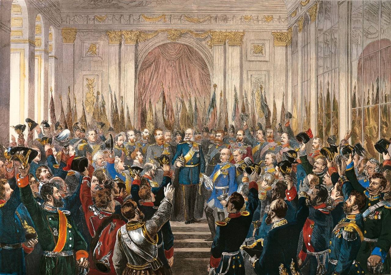 18 января 1871 г. в Зеркальном зале Версальского дворца была провозглашена Германская империя. Данное событие уместно считать скорее инаугурацией императора Вильгельма I, нежели провозглашением империи. В юридическом отношении империя существовала с 1 января, когда вступила в силу Конституция Германского Союза. Именно в этом документе Союз именовался «империей», а его глава – «императором». Впрочем, совершенно объяснимо, что в исторической памяти осталась не обыденная публикация документа в газетах, а торжественная церемония победителей в сердце поверженного противника.