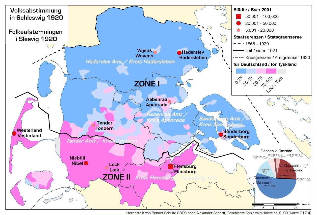 В Зоне I референдум прошёл 10 февраля 1920 г. 75% проголосовавших изъявили желание войти в состав Дании и лишь 25%, преимущественно в городах – остаться в составе Германии. Однако прямо противоположные результаты пришли из Зоны II, где голосование состоялось 14 марта. Там за Германию проголосовали 80% при 20% за Данию.