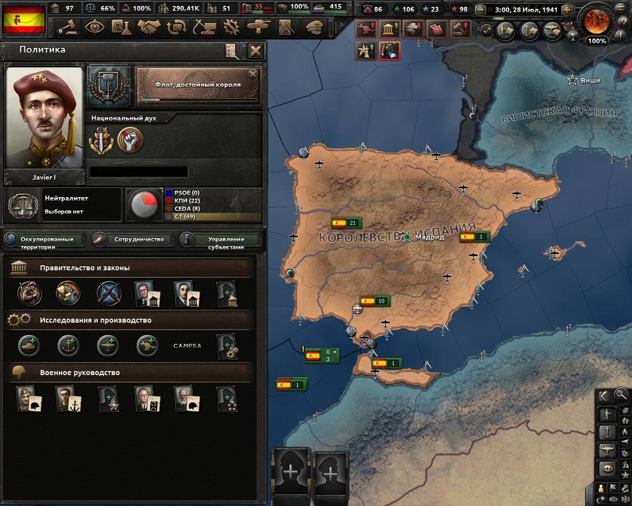 В январе позволил себе засесть на десятки часов в Hearts of Iron 4. В числе прочего играл за Испанию. В начале катки выбрал «правую» ветку фокусов. Но играть за Франко мне показалось слишком банальным, поэтому в дальнейших фокусах я избрал путь карлизма.