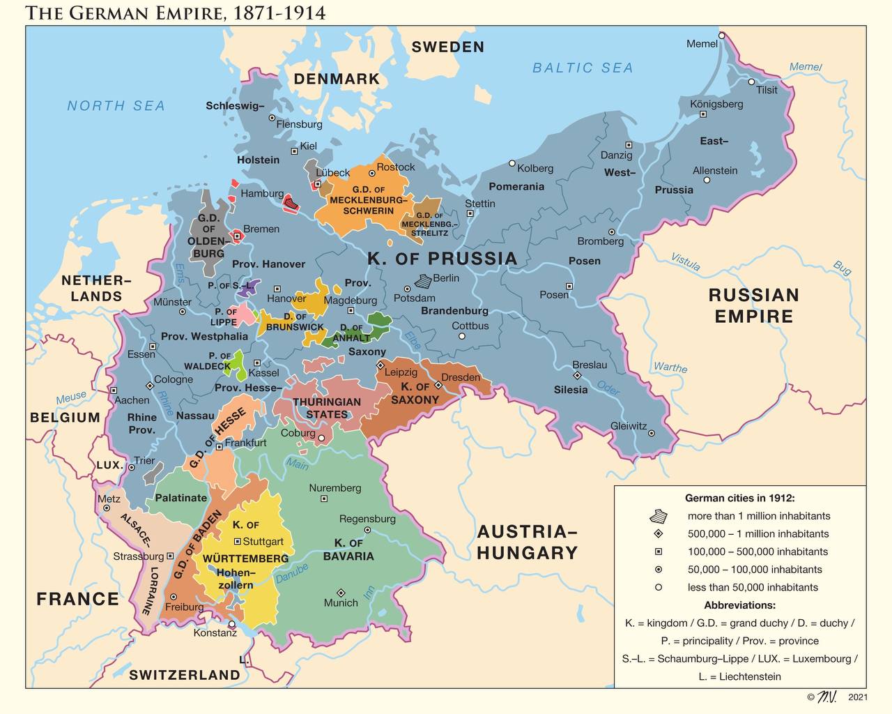 Просто «королями Пруссии» («König von Preußen») Гогенцоллерны стали в 1772 г., когда Фридрих II отжал у поляков ту самую Западную Пруссию. Наконец, юридическое объединение всех земель под контролем Гогенцоллернов в единое Королевство Пруссия состоялось лишь после официального роспуска империи в 1806 г.