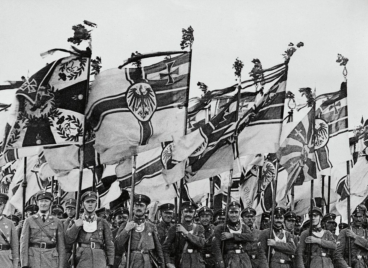 «Стальной шлем» как организация немецких фронтовиков был создан уже в декабре 1918 г. В первые десять лет своего существования он позиционировался как «надпартийная» структура, пусть и с сильным «правым» уклоном. Но к концу 1920-х гг. в среде немецких «правых» окончательно победили антиреспубликанские настроения, и «Шлем» стремительно радикализировался. С тех пор он представлял собой авторитарно-правую антидемократическую антисемитскую военизированную организацию с полумиллионом членов. Всё чаще его лидеры описывали себя как «немецкие фашисты», ориентировавшиеся на опыт Италии Муссолини.