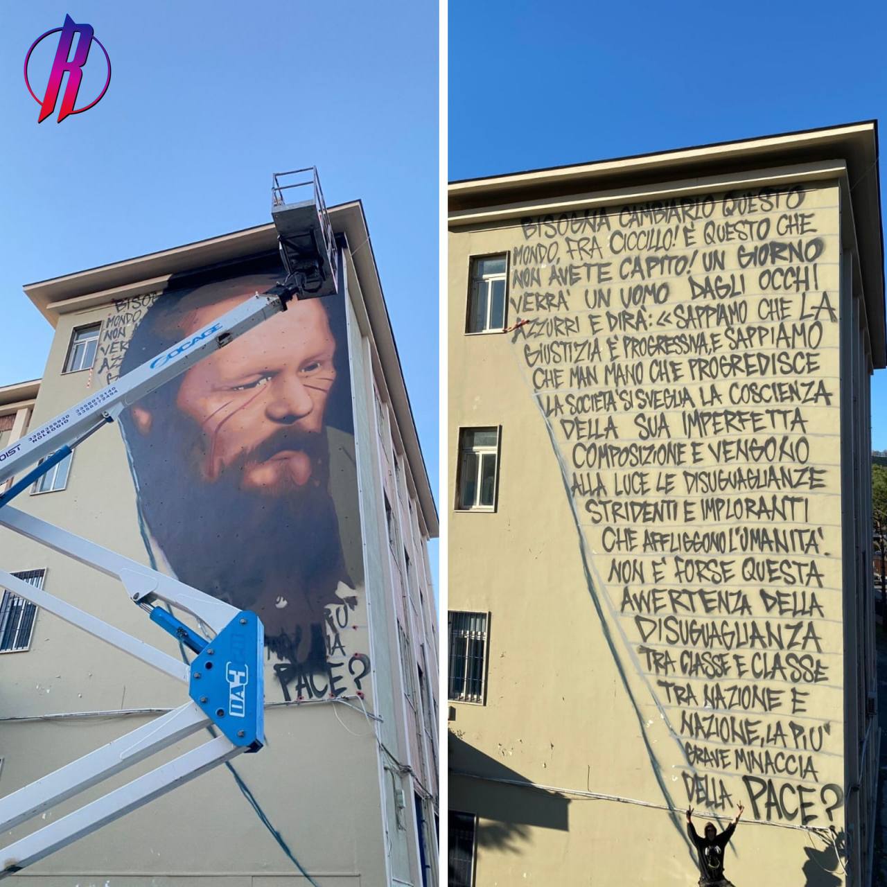 Итальянский художник Йорит — автор портретного мурала — выразил таким образом свой протест против решения Миланского университета Бикокка закрыть курс лекций о Достоевском из-за спецоперации на Украине, сообщают AGI-Agenzia.