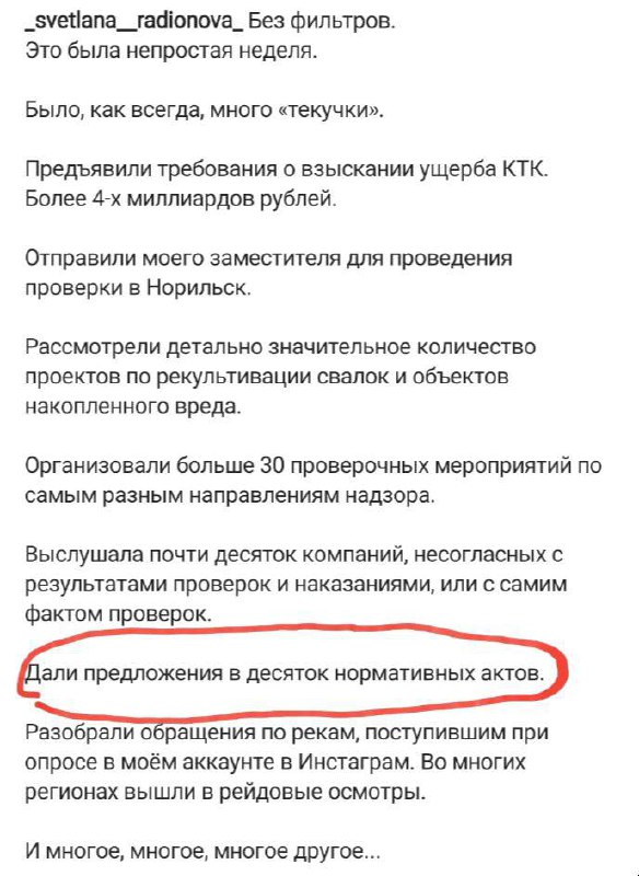 Среди громких побед, перечисленных Радионовой в конце поста притаился скромный пункт: «Дали предложения в десяток нормативных актов».