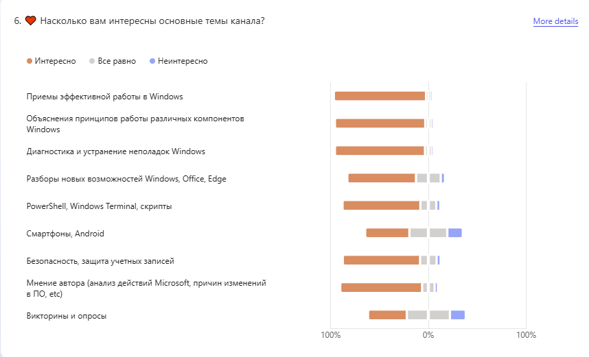 Однако опрос показал, что это наименее интересная категория контента. Буду думать над балансом 🤔
