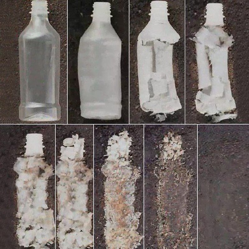 Вот так «биоразлагается» пластик с химической добавкой - на это нужны специальные условия и 60 дней времени. На последней картинке микрочастицы пластика, которые не видны глазу - чтобы они разложились требуется ещё 500 лет.
