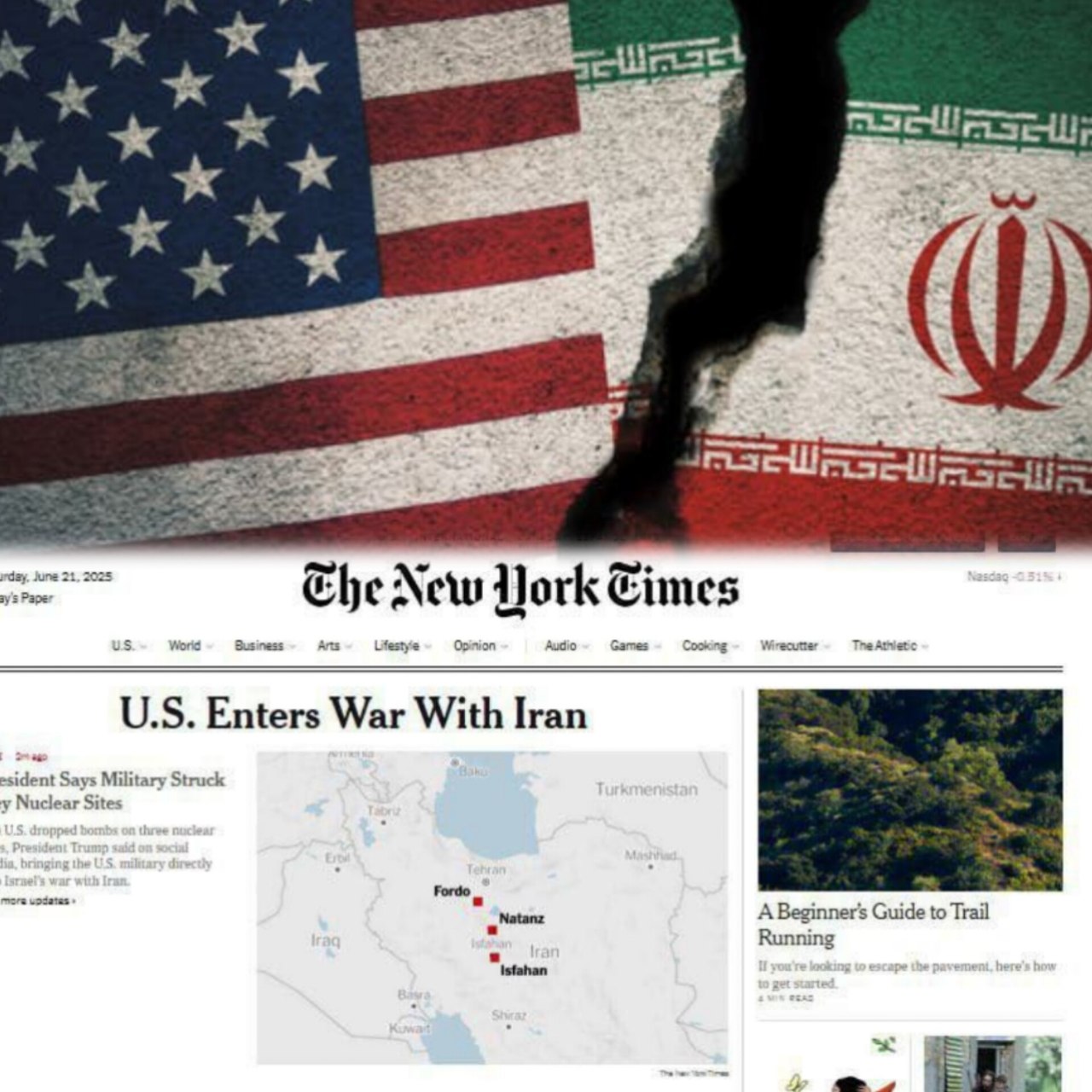 22 IYUN, YAKSHANBA kuni, Tehron vaqti bilan taxminan tonggi soat 4 da AQSH Eronga hujum qildi. Shundan so‘ng esa Tramp Eronni tinchlikka chaqirdi. Ikkiyuzlamachilikning eng yorqin namunasidir.