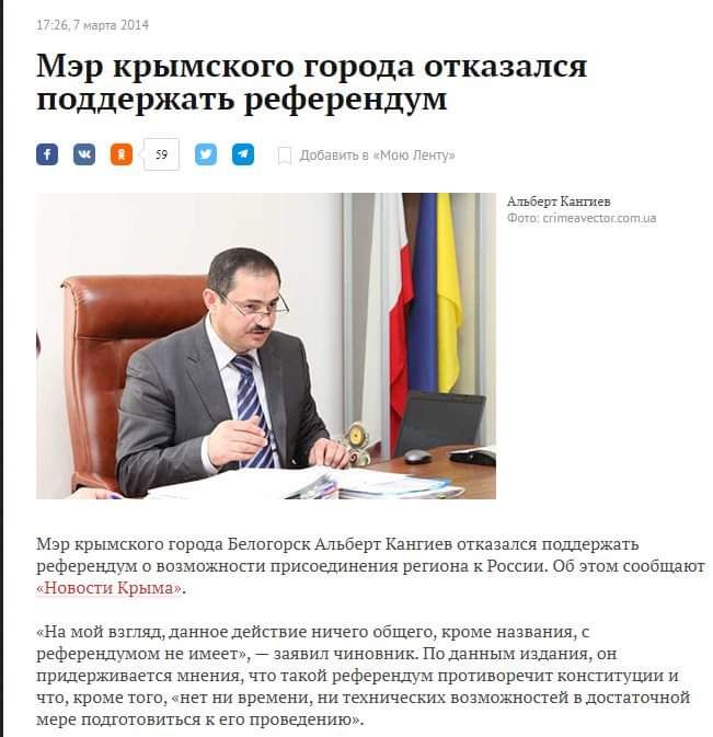 В 2014 году Кангиев выступил ПРОТИВ референдума о вхождении Крыма в состав России.