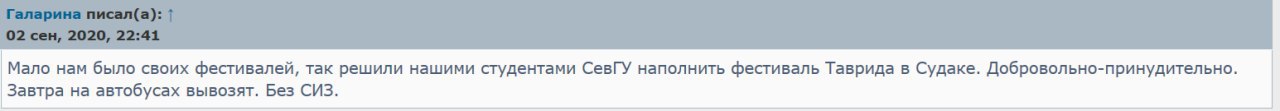 Посетители севастопольского форума сообщают, что в "добровольно-принудительном" порядке вывозят студентов на фестиваль Таврида-Арт, где совсем недавно была выявлена вспышка COVID-19
