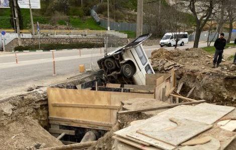 Автомобиль чудом не задел вентиль водовода, в этом случае без воды остались бы два района города, а водитель, скорее всего, погиб.