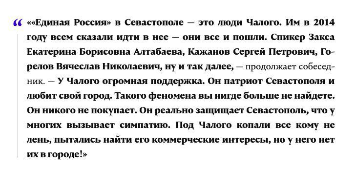 "По имеющейся информации, секретарь севастопольского отделения "Единой России" может быть связан с ООО "Второй дом", которое собиралось получить 265 га в Байдарской долине и построить элитный колледж, причем большая часть участка предназначалась якобы под коттеджный поселок для родителей и преподавателей. Проект провалился после широкого общественного резонанса и вмешательства властей. Однако кто сказал, что, имея соответствующее влияние, это нельзя переиграть?"