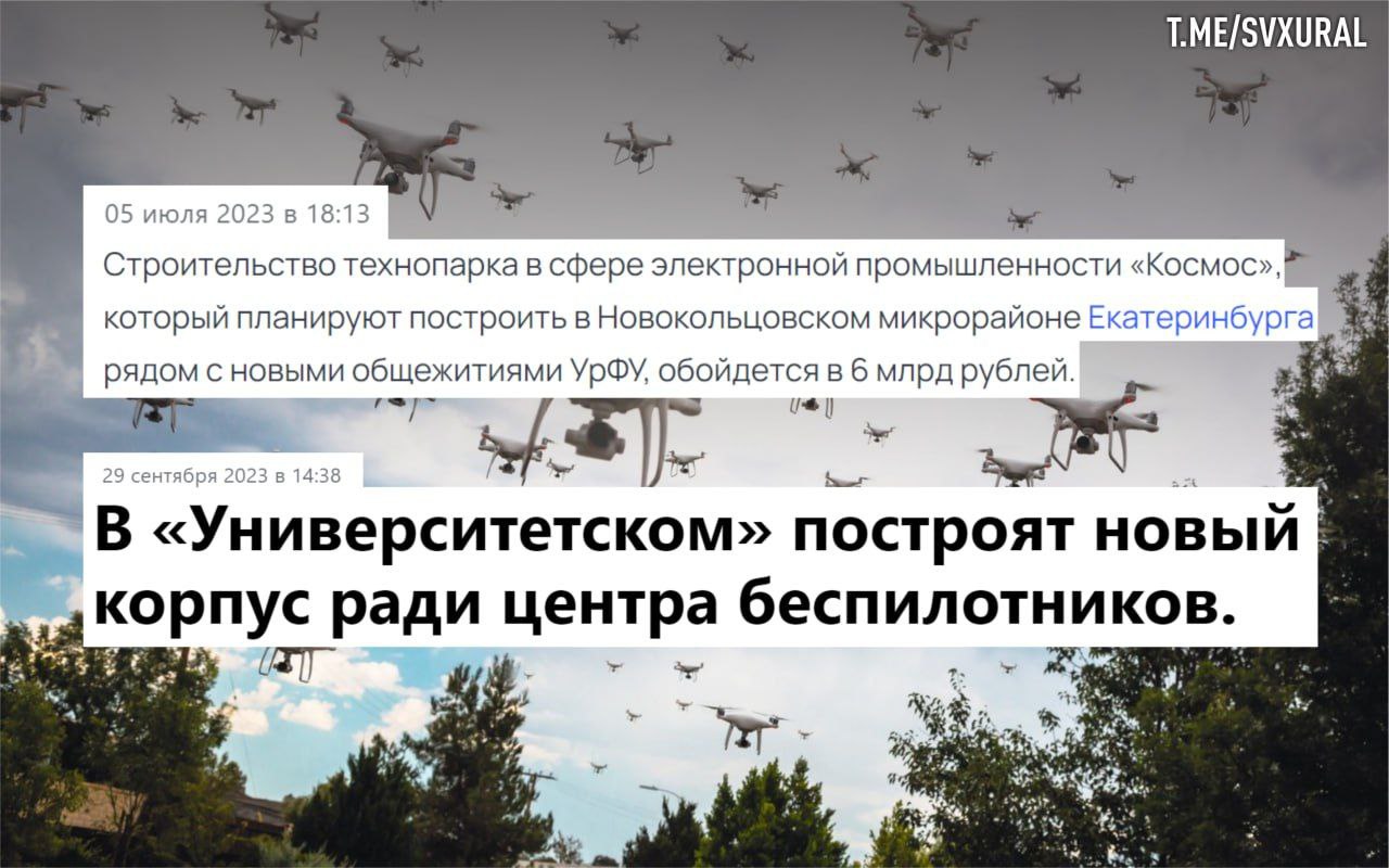 В сентябре власти Свердловской области заявили, что на базе другого государственного технопарка "Университетский" в Екатеринбурге появится научно-производственный центр беспилотных авиасистем. Об этом рассказал замминистра промышленности региона Игорь Зеленкин. К 2026 году планируется закончить строительство производственного корпуса площадью до 3 тыс. кв. метров.