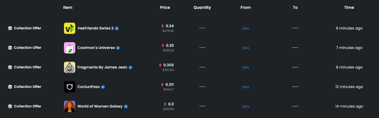 ❕Биды такого рода будут доступны только для топ-100 коллекций по 30-дневному объему продаж.