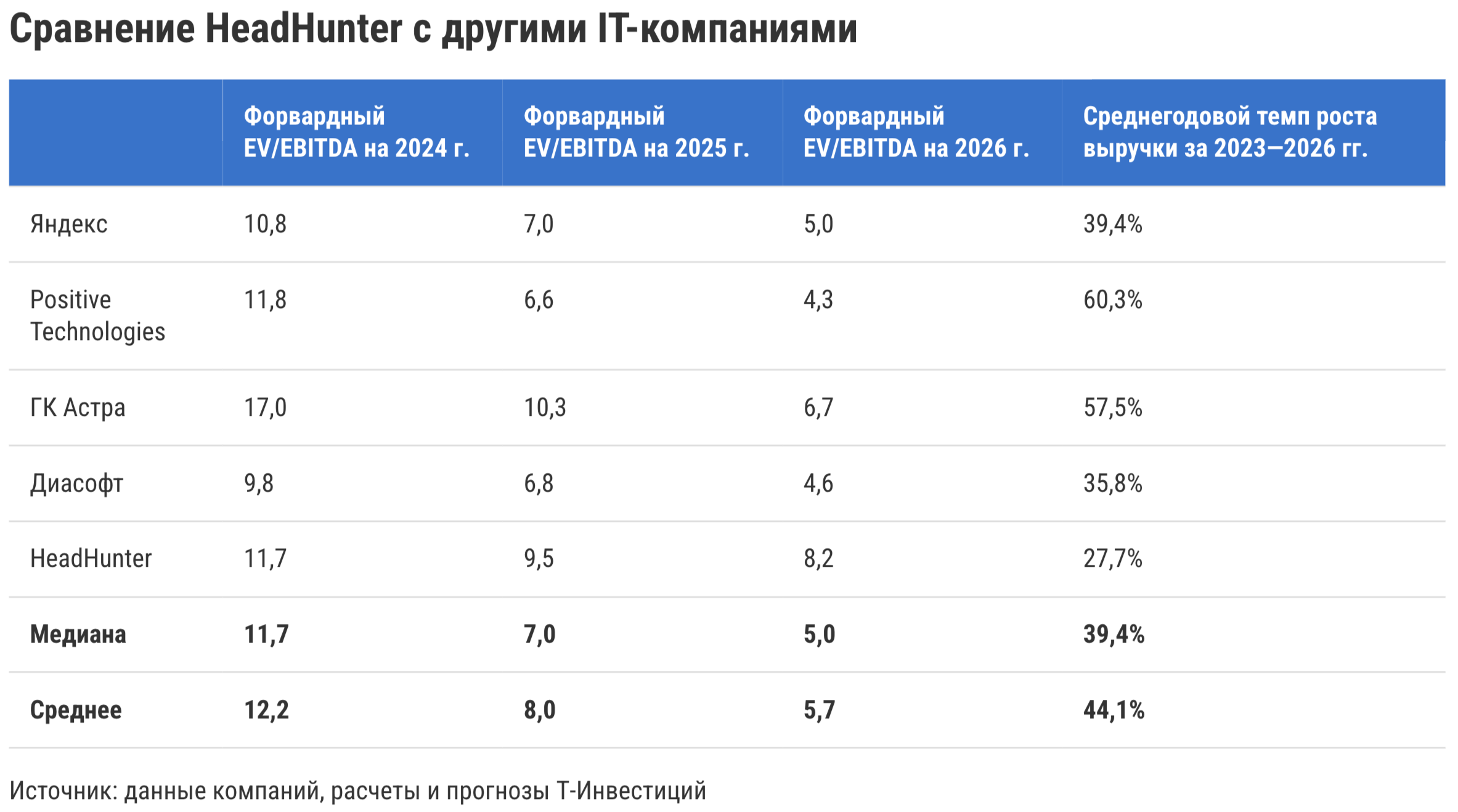 ▪️ Бумаги торгуются вблизи справедливого уровня, учитывая вероятный возврат дивидендов. По нашей оценке, форвардный мультипликатор EV/EBITDA, который учитывает прогноз EBITDA за 2024 год, у HeadHunter на уровне 11,7х. Такое значение мультипликатора соответствует средним уровням по российскому технологическому сегменту.