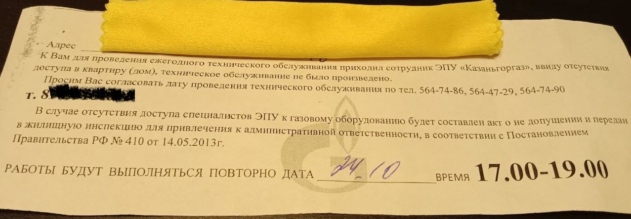 Здравствуйте якудза. Вот такую бумаженцею обнаружил в дверях квартиры. Казаньгоргаз в своем стиле каждый год!!! Они приходили днем когда никого не было дома и рассовали во всем доме эти бумажки. В них они угрожают ответственностью за недопуск!