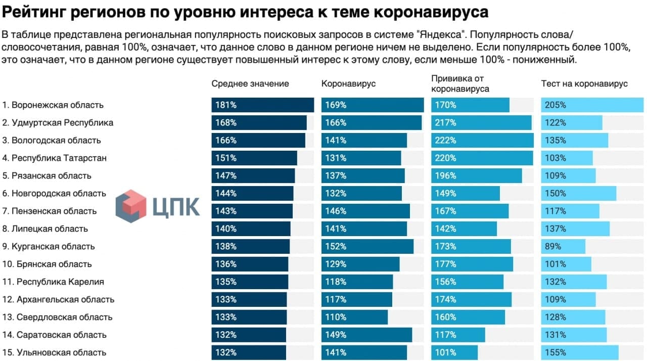 Такой вывод следует из исследования Центра политической конъюнктуры (ЦПК), проанализировавшего специфику поисковых запросов на тему коронавируса в России и сообщения о пандемии в социальных сетях.