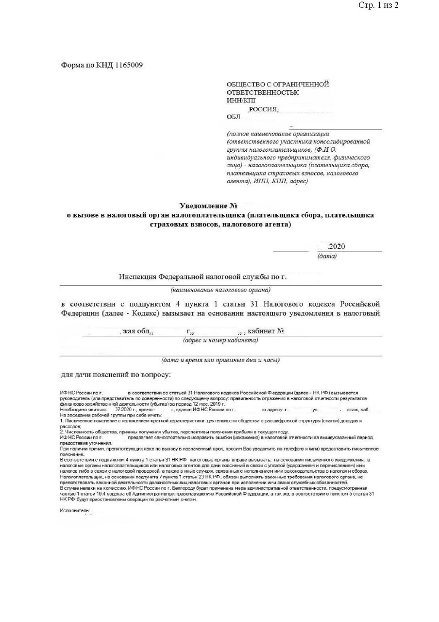 Вызов в налоговую.