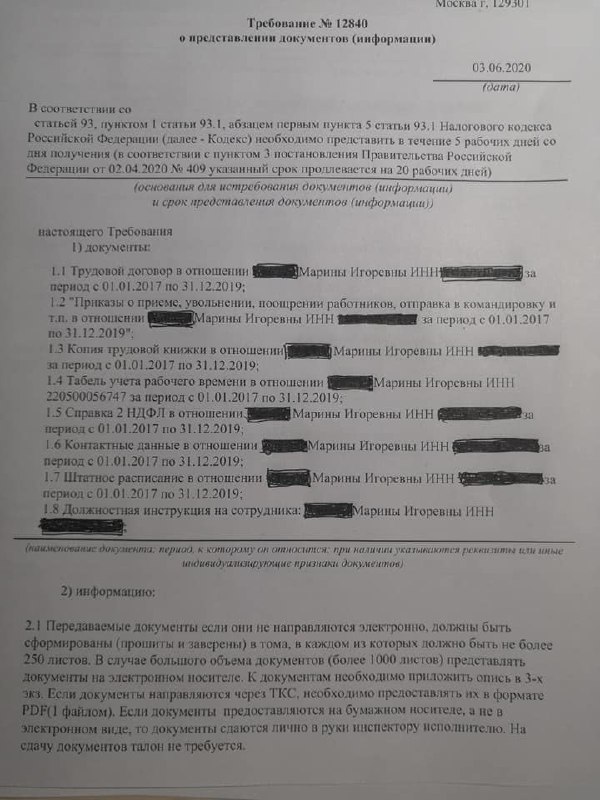 👮 Только вчера в нашем чате разгорелся спор, где «бывший сотрудник ОВП» делился своим подходом общения с налоговыми органами. Он заключается в том, что бы не было проблем давать все, что требует налоговая. В противном случае могут возникнуть неприятности. Противоположенная точка зрения была у части налоговых консультантов, которые считают, что инспекторам следует жить по законам. А всем давать – поломается кровать (народная мудрость).