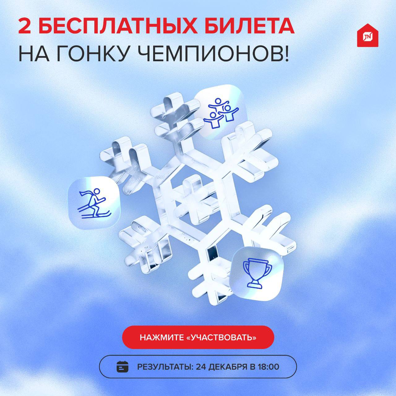 У нас хорошая новость: на ГОНКУ ЧЕМПИОНОВ, которую ТЕХНОНИКОЛЬ организует 3 и 4 января, появилась еще парочка билетов. Подарим в одни руки, кому повезет в розыгрыше от бота.