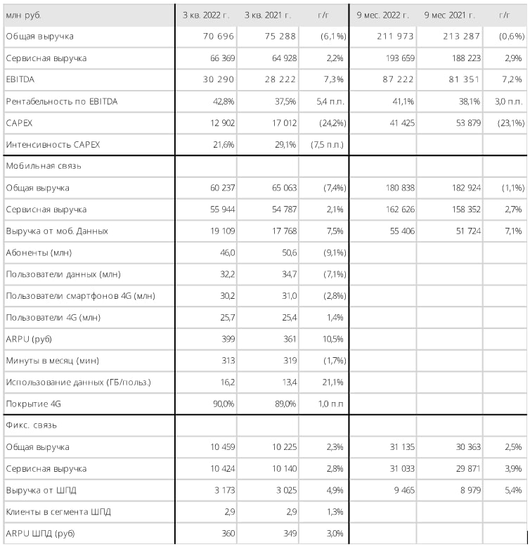 Вымпелком отчитался за 3 квартал 2022 года