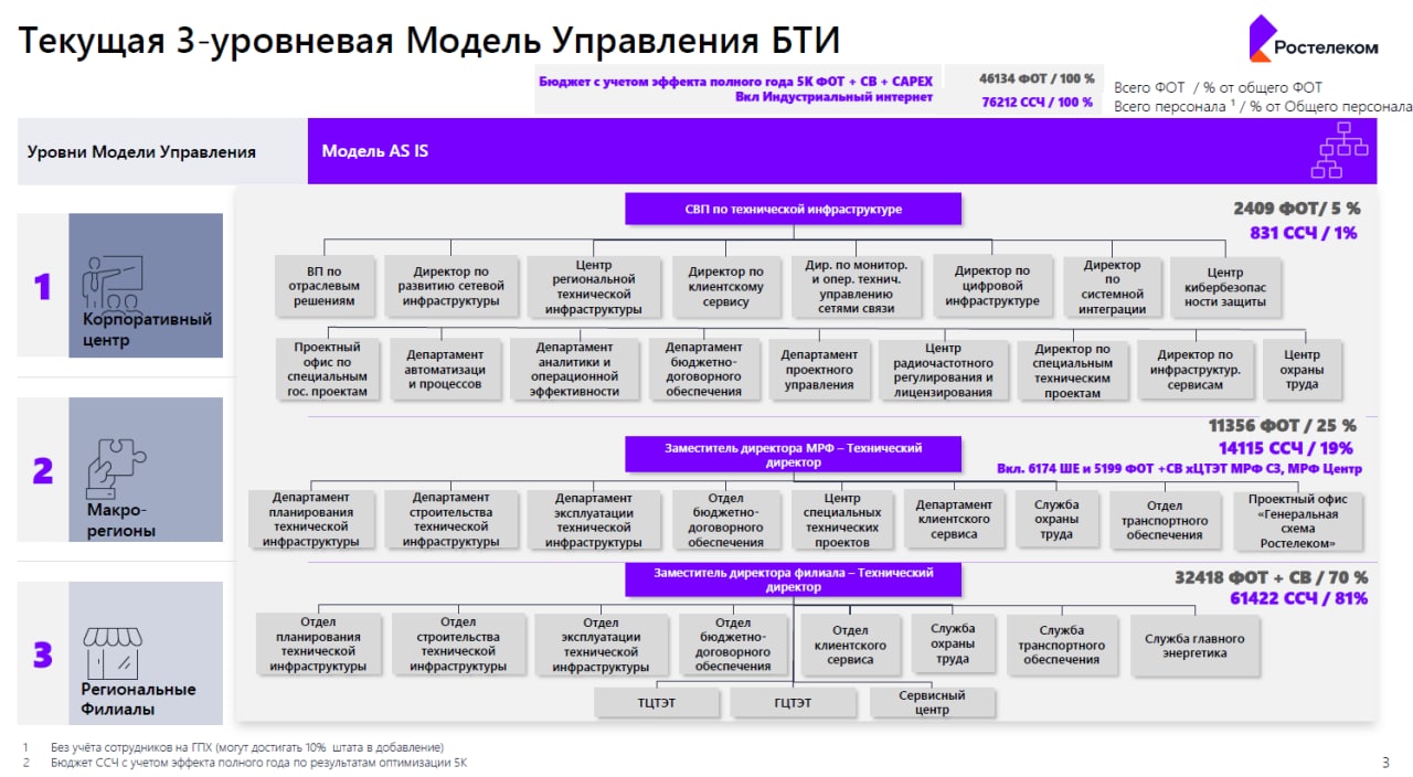 Говорят, что эта структура управления перешла компании от «Связьинвеста», но это не совсем верно. Такая структура была нормой отрасли в начале 2010х годов. Потом от нее начали отказываться компании «тройки». Обычно трансформация структуры управления происходила с приходом нового главы, но Ростелеком, будучи кондовой госструктурой, с этим затянул.