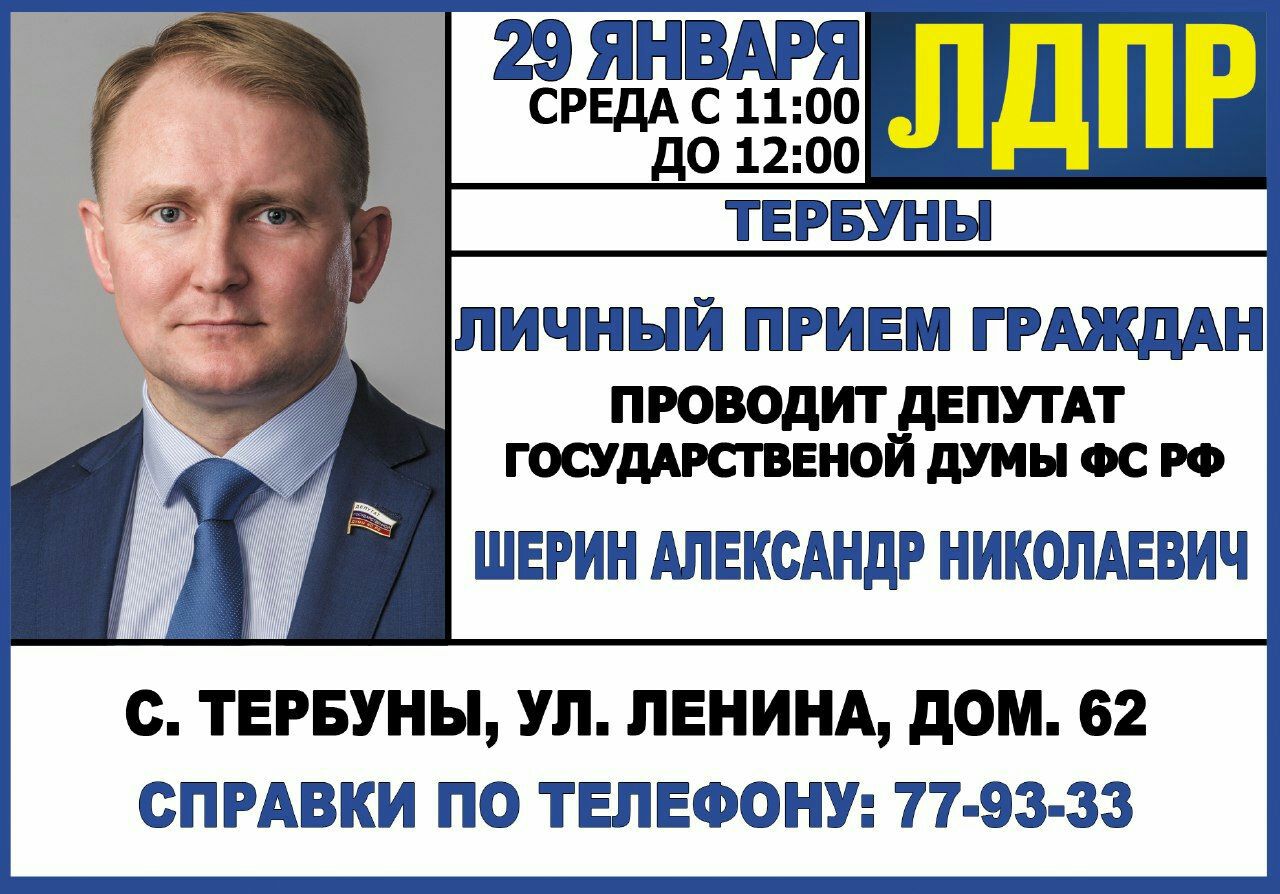 Тербунцы напоминают, что завтра в здании библиотеки состоится встреча с депутатом госдумы от ЛДПР Александром Шериным.