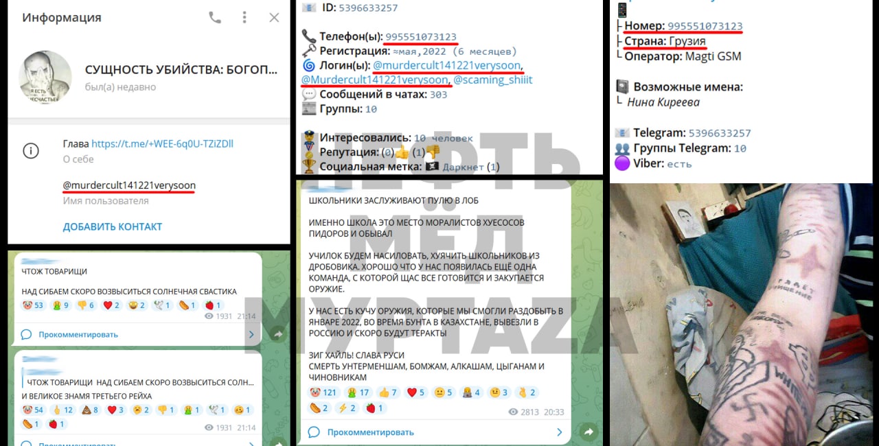 Аккаунт админа телеграм-канала, который призывает к терактам в городе Сибае, зарегистрирован в Грузии. Сам админ является одним из пропагандистов МКУ — Маньяки: культ убийств, запрещенной в России организации.