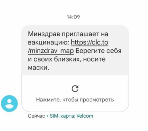 Только что пришла СМС от Минздрава. Пригласили на вакцинацию (видимо массовая рассылка, т.к. я вакцинирован) и призвали носить маску.