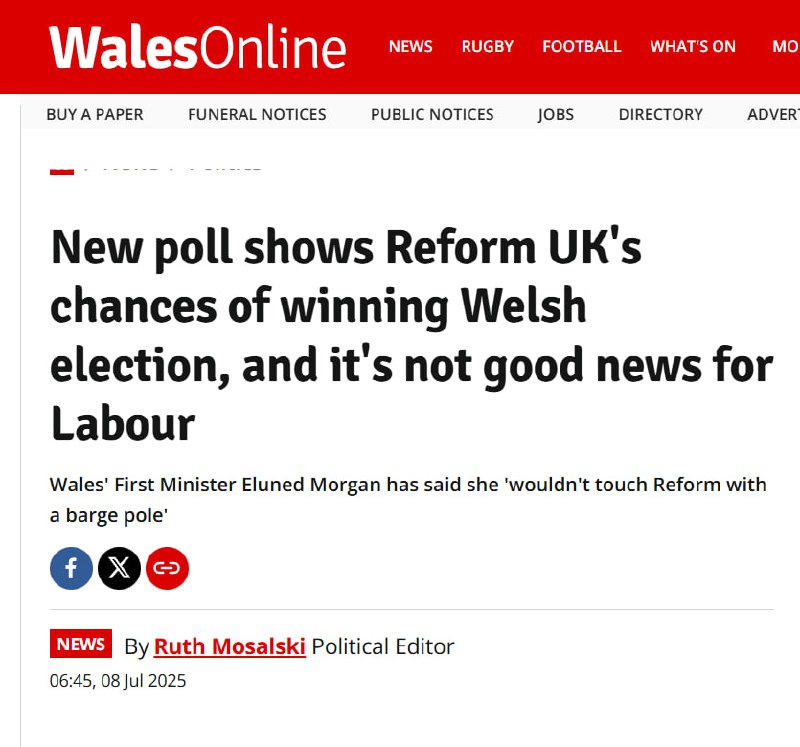 Згідно з останнім опитуванням "More in Common" на замовлення "Sky News", "Партія реформ" лідирує на виборах у Вельсі, маючі підтримку 28%. За ними йдуть вельскі націоналісти з "Plaid Cymru" з 26%.