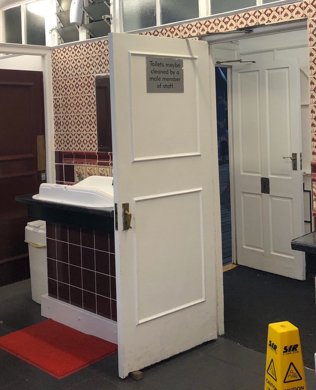 Перевод: Туалеты могут убраны персоналом мужского пола