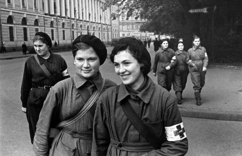 фото — наблюдательницы ПВО на крыше здания, Давид Трахтенберг, Ленинград, 1942