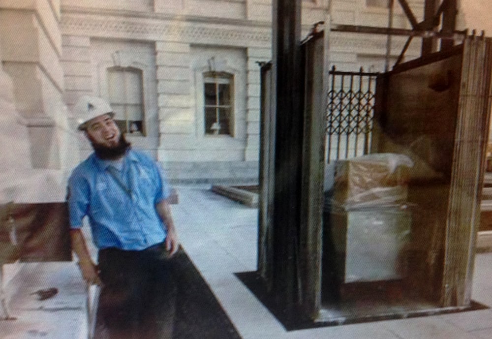 Короче, «The Capitol Flag Program» работает уже с 1937 года. И по этой программе, «производство» Капитолийских флагов США буквально поставлено на поток, как гамбургеры в Маке, или автомобили на заводах Форда. Ведь на самом деле на Капитолии не один, а целых четыре флагштока. На главном круглосуточно гордо реет флаг США, вызывая приступы любви к государству у всех граждан, проходящих мимо. А вот на трёх поменьше, развеваются флаги на продажу. Каждый из них поднимается здесь ровно на 30 секунд, потом спускается и после этой процедуры, он получает статус: «тот самый» и специальный сертификат, подтверждающий это. К площадке с этими флагштоками ведёт особый служебный лифт (на фото), на котором из подвала поднимают коробки с простыми флагами, а спускаются уже «освящённые» знамёна, напитанные духом свободы и предпринимательства. Кроме всего прочего, на флагштоки направлены видеокамеры. Зачем? Просто там был неприятный случай, когда некоторые работники откровенно манкировали своими обязанностями и вместо того, чтобы согласно протоколу прицеплять флаг к флагштоку и поднимать его, банально махали им в воздухе на руках, после чего укладывали назад в коробку. Скандал! Работников уволили и организовали наблюдение за «производством».
