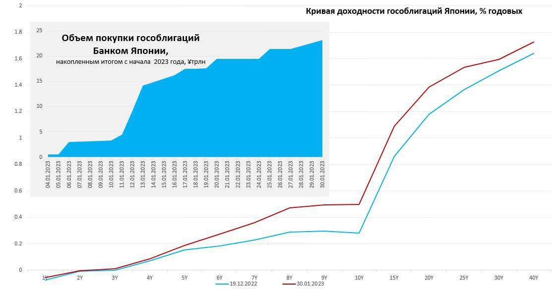 В понедельник ЦБ утвердил план покупок гособлигаций на 1 квартал без изменений, объем покупок планируется ¥7.3-10.7 трлн в месяц ($55-80 млрд). В январе Банк Японии почти выполнил квартальный план, скупив гособлигаций на ¥23.2 трлн (~$178 млрд). Масштабы в реальности колоссальны, это: