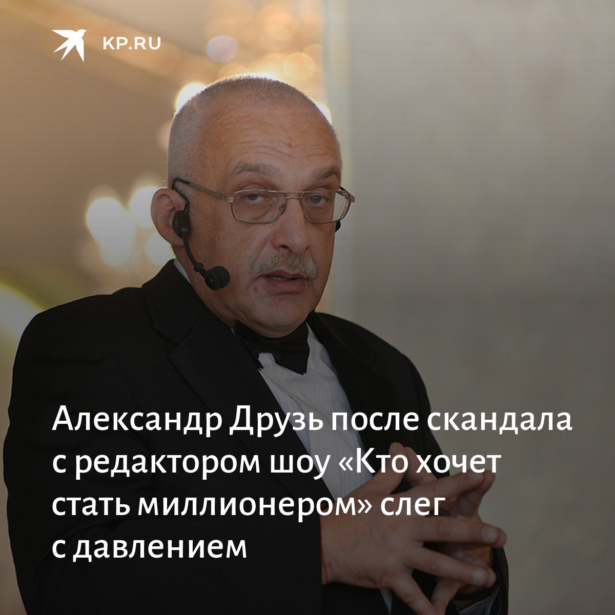 Александр Друзь после обвинений от редактора шоу «Кто хочет стать миллионером» слег с давлением. Магистр игры «Что? Где? Когда?» не может вызвать даже врача, так как его квартиру в Петербурге оккупировали журналисты