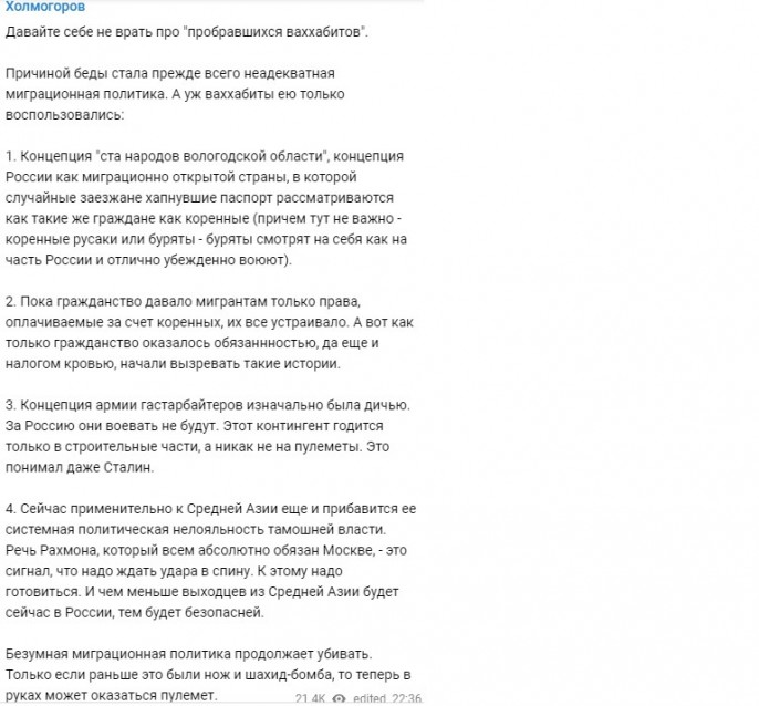 Ещё о том, что исправить РФ в политике по отношению к мигрантам здесь.