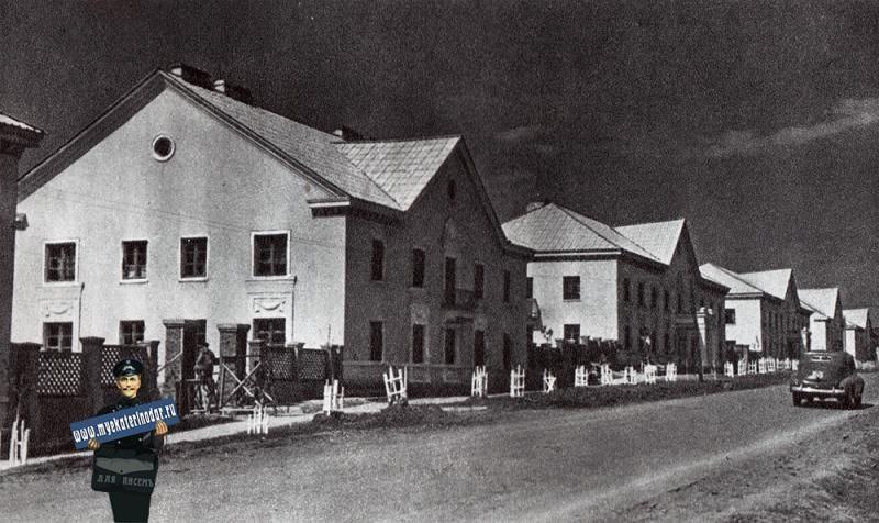 "...Раньше здесь сваливали мусор. Пруд, покрытый зеленой тиной, служил рассадником малярии. Это было далеко за городом. Теперь город вплотную подошел сюда. Исчезла свалка, засыпан пруд... Десятки новеньких домиков выросли вдоль улиц, которые еще не имеют табличек с названиями, но они скоро будут. Горисполком уже утвердил предложенные жителями названия — улицы Светлая, Офицерская, Нефтяная, Дальняя и другие. Здесь живут рабочие, инженеры, служащие, много домиков принадлежит демобилизованным воинам, инвалидам Отечественной войны. Закончил строительство своего домика инженер М. Аракелов, посадил сад — здесь сливы, яблони, груши, кусты роз. Рядом построил домик стахановец — печник М. Барычкин... Многие дома имеют электричество, западная часть поселка радиофицирована, к маю в поселок будет проведен водопровод. В одном из кварталов наметились контуры будущего сквера..."