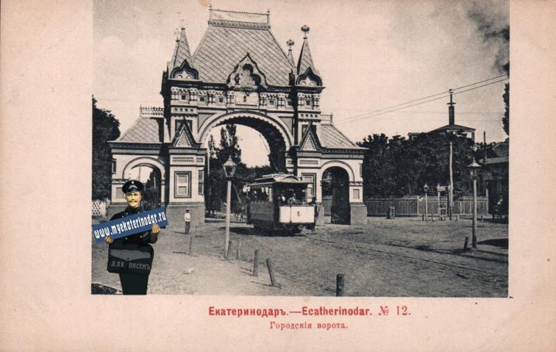 10 декабря 1900 года состоялось освящение екатеринодарского трамвая и открытие трамвайного движения в городе. Пять вагонов проследовали по Екатерининской (ныне Мира) улице и, повернув на Красную, остановились возле городской управы. Там торжественно была перерезана атласная лента, протянутая по всей ширине улицы. 11 декабря началось регулярное движение. Первая трамвайная линия в Екатеринодаре была построена и эксплуатировалась бельгийским акционерным обществом «Компания тяги и электричества» на основании договора, заключенного между компанией и Екатеринодарской городской управой в 1897 г. (договор вначале был заключен с французским обществом «Генеральная компания тяги», которая 19 июня 1898 г. уступила концессию бельгийскому обществу). Для строительства электростанции, вагонного парка и мастерских (станция заложена в сентябре 1899 г.) отводилось место на углу улицы Екатерининской и Карасунского канала (ныне территория трамвайно-троллейбусного управления, пересечение улиц Мира и Суворова).