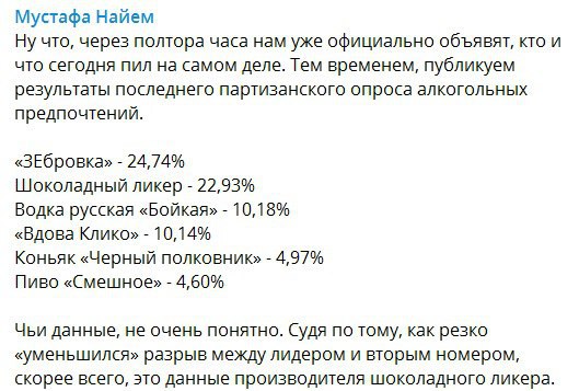 Ниже Мустафа опубликовал финальный рейтинг кандидатов – инсайдерские одного из экзит-полов.