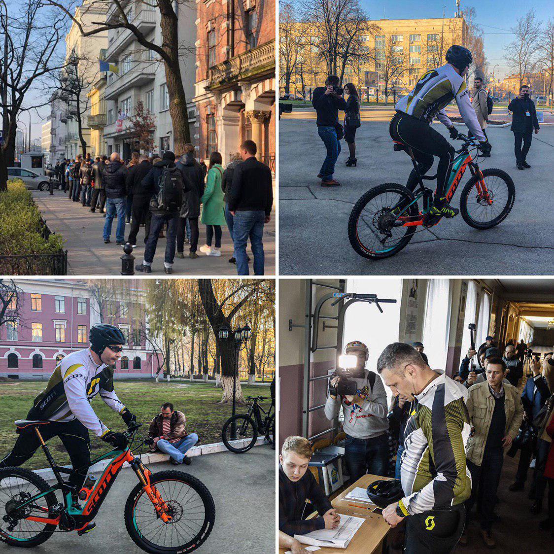 Выборы президента Украины набирают оборот. Кадры дня уже начинают поступать. Огромная очередь желающих проголосовать в Варшаве и мэр Киева Виталий Кличко, приехавший голосовать на велосипеде.