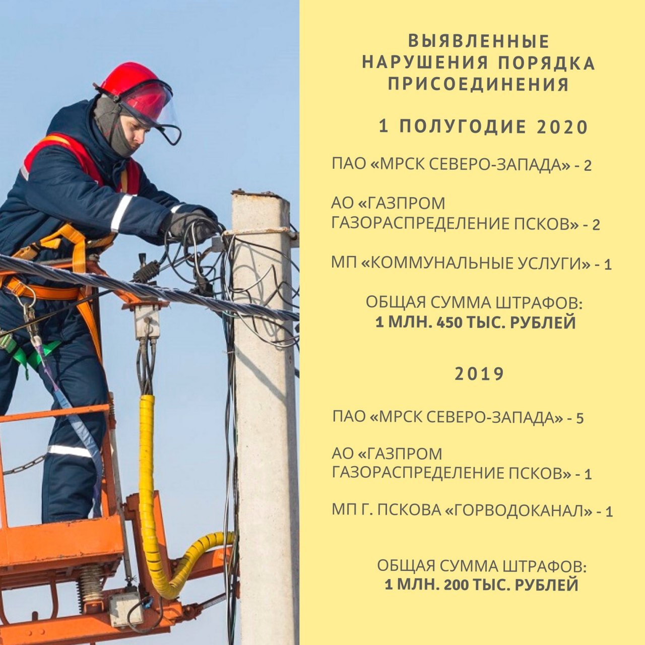 В инфографике 👇 отражено количество постановлений Псковского УФАС о привлечении к административной ответственности в связи с нарушением порядка присоединения к электрическим и газовым сетям, а также сетям водоснабжения.