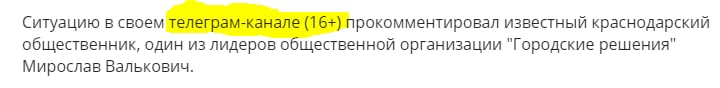 Интернет-издание krasnodarmedia.su присвоило мне категорию 16+ )) За что? )) Вроде не матерюсь, алкоголя, секса и наркотиков нет. Даже про гей пропаганду ни слова 🤷♂️