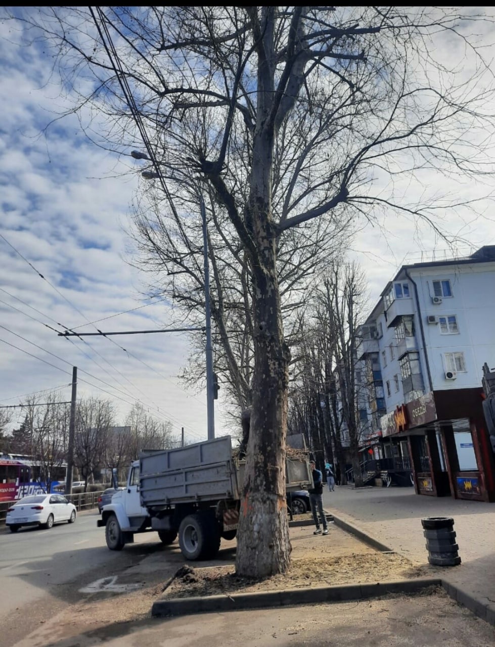 3. Удивительное. Обнаружили спиленный платан (между этими адресами) и высаженный новый, о чем… центр озеленения оказался даже не в курсе (да, такое тоже бывает), якобы это все произошло без их ведома...