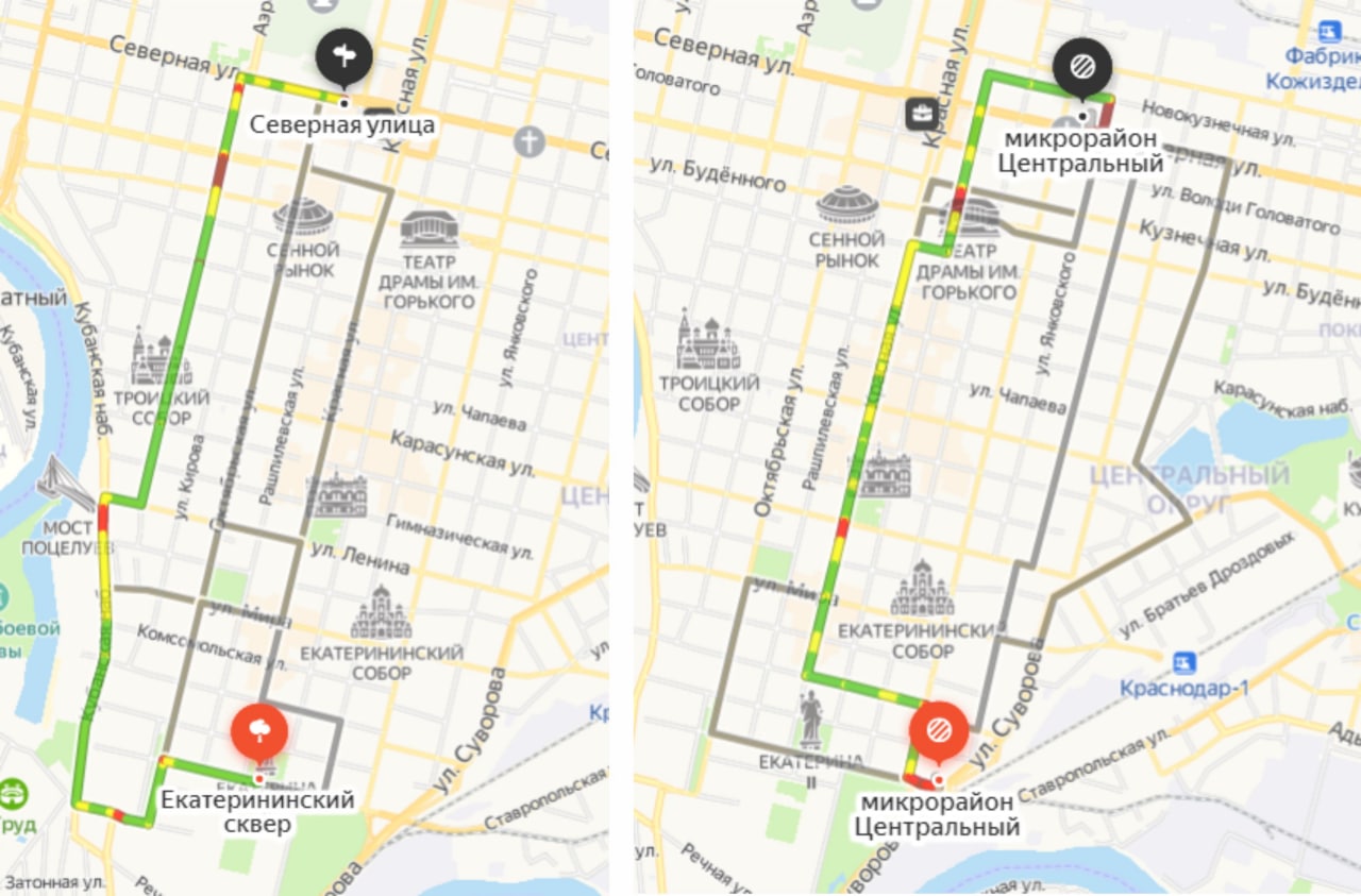 Вот пытаюсь в Яндексе проложить транзитный маршрут с юга на север из разных точек, но он все упорно не дает мне через Красноармейскую 🤷♂️ И это сейчас, когда улицы не перекрыты. Так что да, пользуйтесь навигаторами - они дурного не посоветуют, сэкономят вам и время, и нервы ;) А центр оставьте для местных жителей и пешеходов.